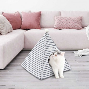 Ohana Florence - Blue Stripe Cat Tent BedCovered Cat BedDescriptionThe perfect place for your new puppy or kitten or cat to curl up or stretch out, a cat tent bed with a little room left for their new favourite blanket or toy too.FeaturesTEEPEE DESIGN provides an extra sense of privacy, security & comfort, making it ideal for your pets as they settle into their new homes.DRAUGHT PROTECTION. Th..